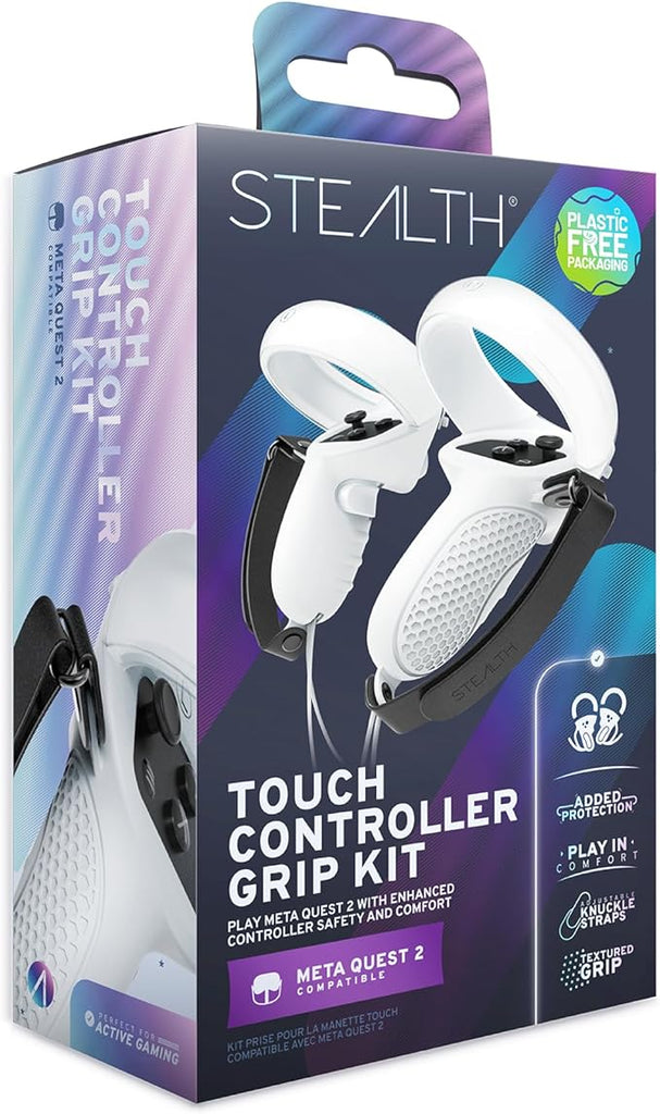 STEALTH Sense Controller Grip Kit Compatible with Meta Quest 2, Adjustable Knuckle Straps, Easy-Fit Grips with Halo Ring Protection